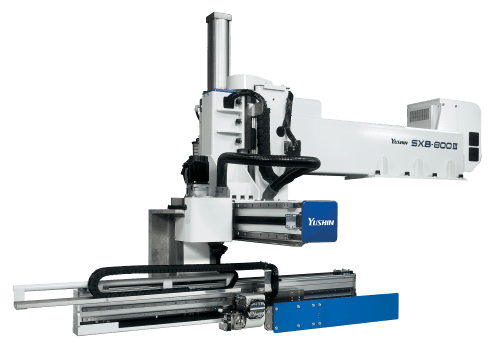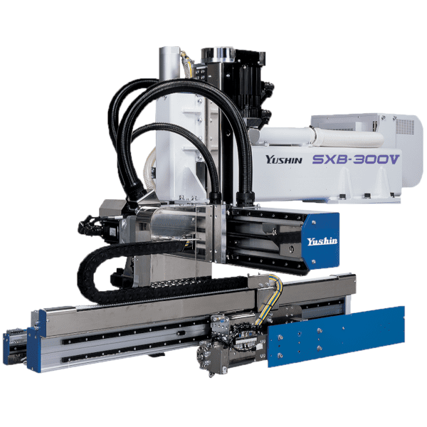 In addition to the SXB-30II that is NC 3-axis robot for 2-plate mold, the SXB lineup offers also the SXB-300V that is NC 5-axis robot for 3-plate mold.